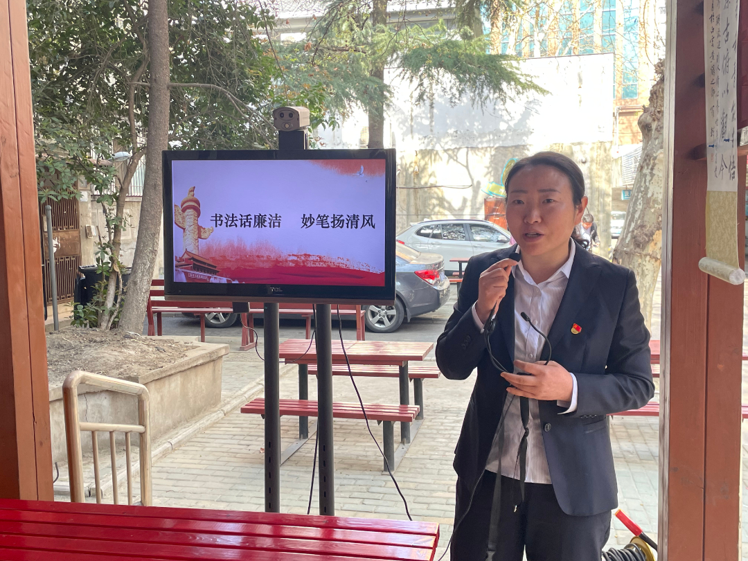 學(xué)習(xí)交流結(jié)束后,轄區(qū)兩名書(shū)法家以“書(shū)法話廉潔·妙筆揚(yáng)清風(fēng)”為主題書(shū)寫了黨風(fēng)廉政書(shū)法作品。清風(fēng)亭里,黨員代表們一邊品味書(shū)法,揚(yáng)崇廉尚潔之風(fēng);一邊觀棋對(duì)弈,育閑情雅趣之德。