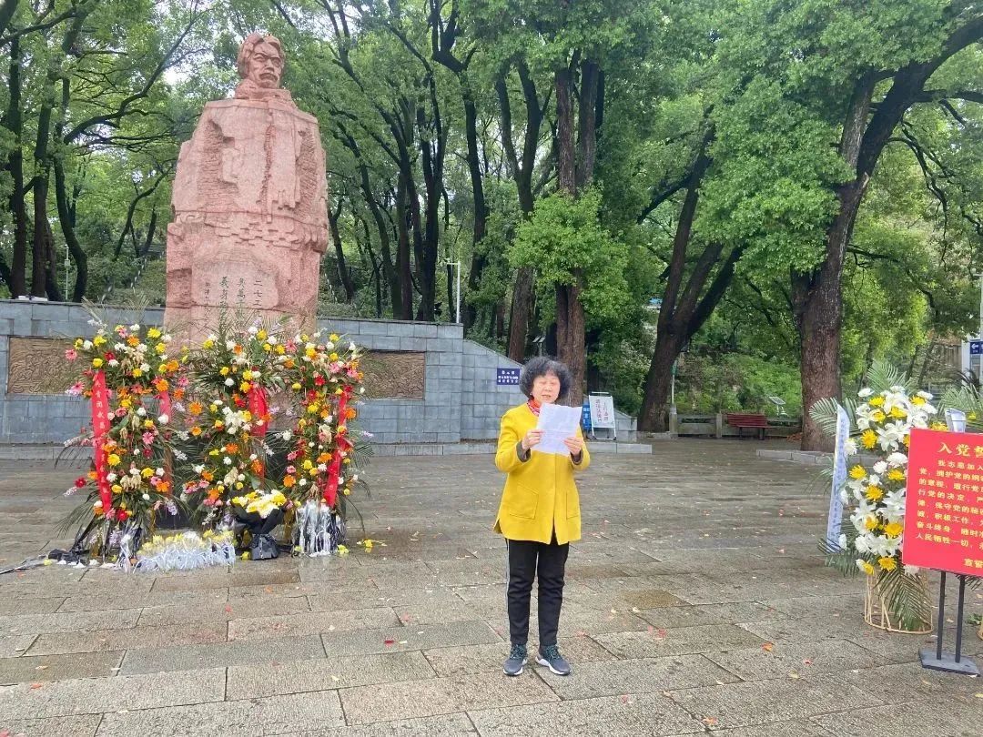 活動首先重溫了入黨誓詞、介紹了施洋烈士生平事跡,并由社區(qū)“光榮在黨50年”黨員潘順蓮、社區(qū)青年黨員劉思鴻分別作交流發(fā)言。隨后,全體人員向烈士默哀三分鐘,并向烈士敬獻鮮花。