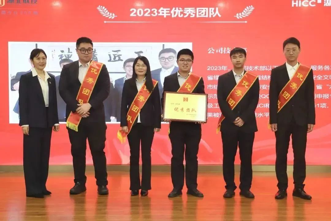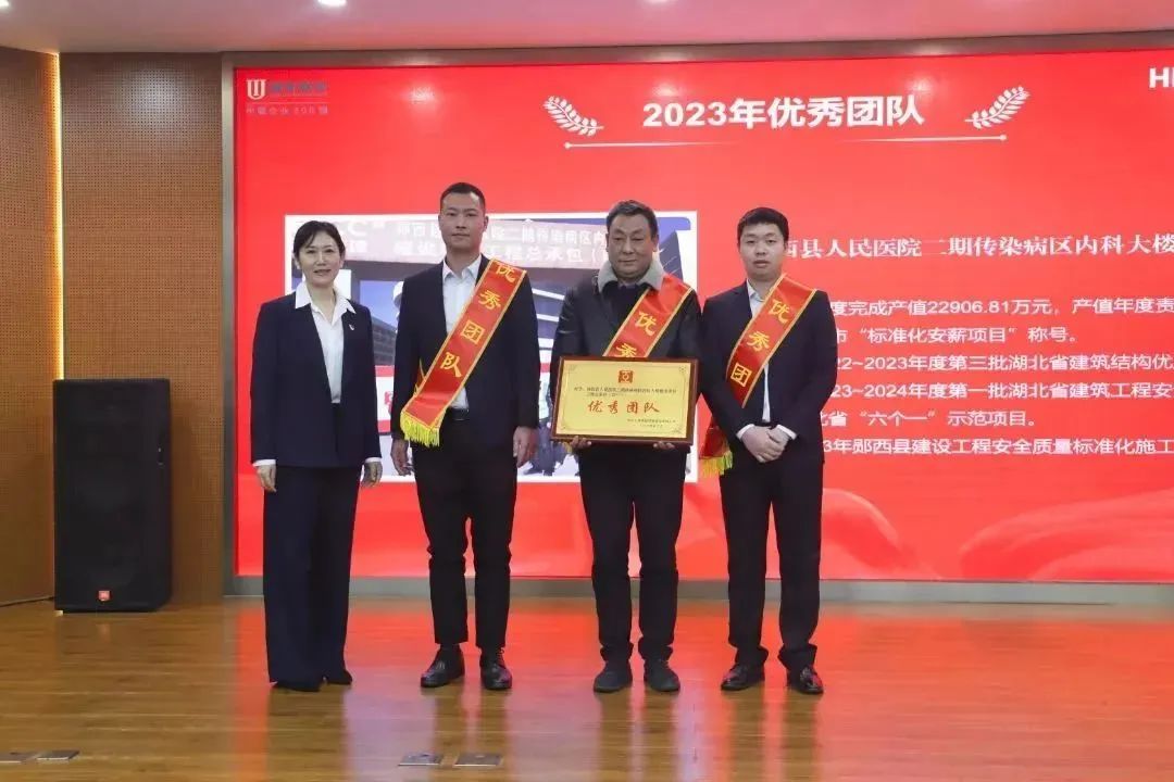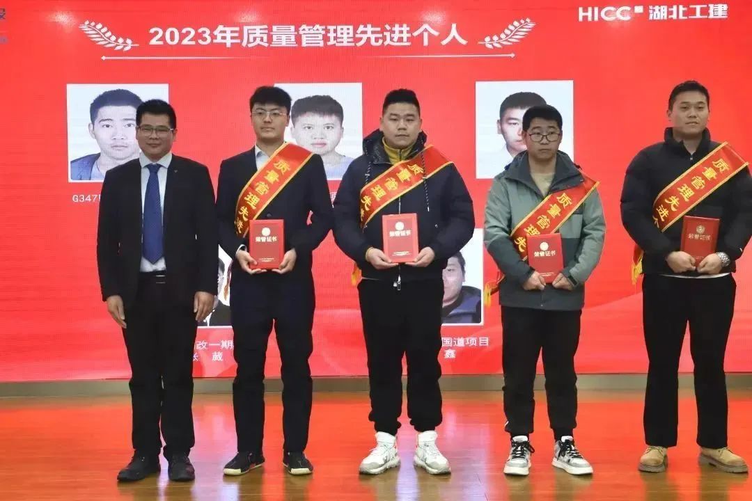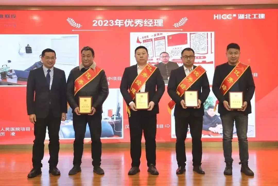 胡超宣讀了《關(guān)于表彰湖北工建基礎(chǔ)設(shè)施建設(shè)有限公司2023年度先進的決定》,公司領(lǐng)導(dǎo)班子成員依次為獲得2023年度“優(yōu)秀團隊獎”“優(yōu)秀供應(yīng)商”“優(yōu)秀經(jīng)理獎”“優(yōu)秀員工獎”“新人成長獎”“安全生產(chǎn)先進個人獎”“質(zhì)量管理先進個人獎”的代表頒發(fā)榮譽證書和獎牌。