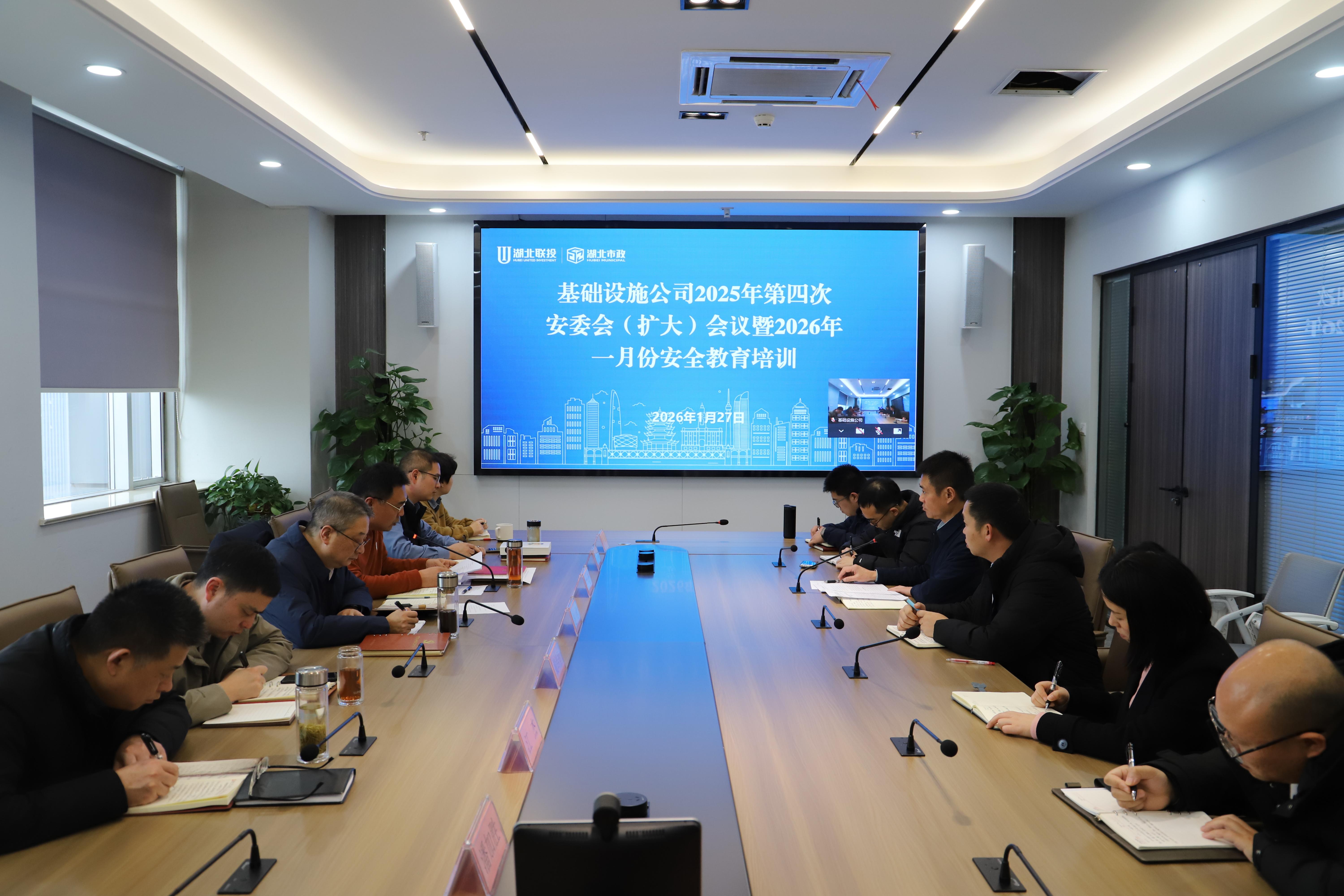 1月27日,基礎(chǔ)設(shè)施公司召開(kāi)2025年第四次安委會(huì)(擴(kuò)大)會(huì)議。湖北市政集團(tuán)黨委委員、副總經(jīng)理,公司黨委書(shū)記、董事長(zhǎng)、安委會(huì)主任趙君出席會(huì)議并講話(huà),公司黨委委員、副總經(jīng)理張占勇主持會(huì)議。